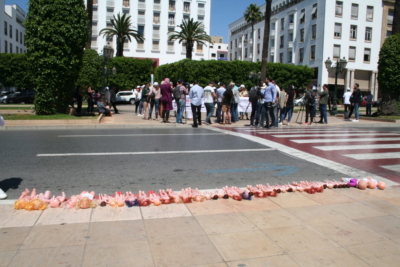 Très bien! Le rassemblement a connu la participation d’une cinquantaine de personnes, plusieurs associations dont l’Association démocratique des femmes du Maroc (ADFM) ainsi que beaucoup de journalistes. Les participants, jeunes et moins jeunes, hommes et femmes, sont venus munis de poupées et de pancartes demandant la légalisation de l’avortement. On n’était pas si nombreux que cela parce que les gens en général travaillent à 15h mais les députés sont sortis voir ce qu’on a fait, ils ont regardé, le message est passé!